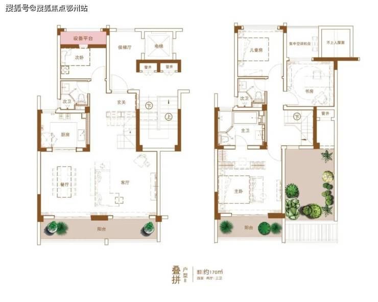 再来看一下叠拼户型,据悉下叠送面积约60平方大花园,上叠赠送面积约20平方超大南向屋面。