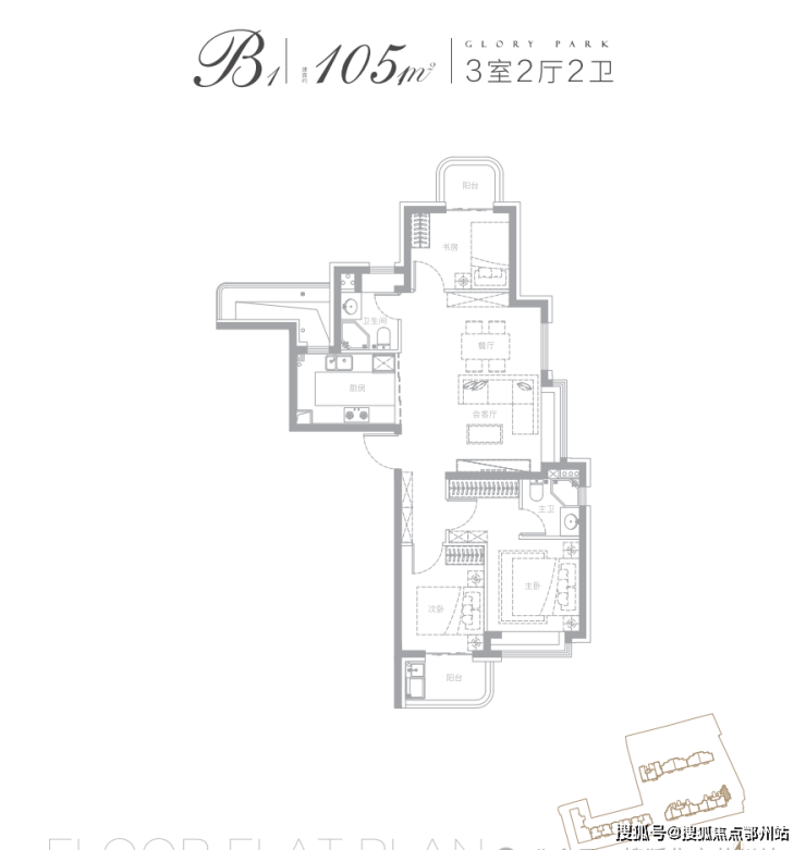 l超拓设计:三开间朝南+横厅,主卧套房配置独立衣帽间及270°转角飘窗,空间利用率大大提升。