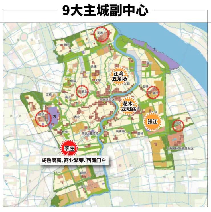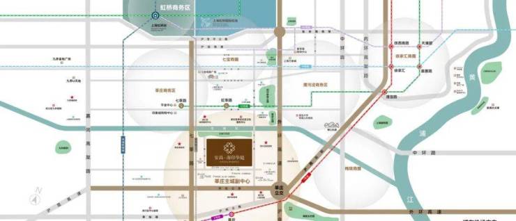 但若你从地图上看,莘庄恰好就处在“心脏”地带,漕河泾、七宝、莘庄工业区、航天城、闵开发、紫竹就像众星拱月般将莘庄环绕在中间。