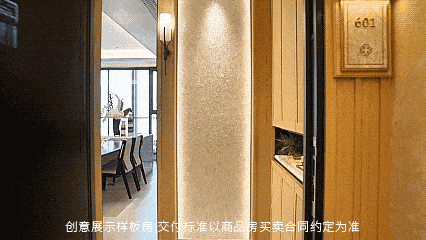 侧边交付了通顶玄关柜,玄关柜台面材质为发光云石台面 ,整体的光泽和美感十足。