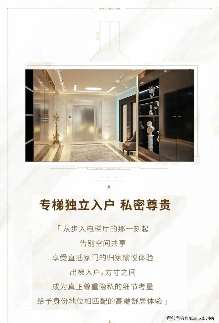 从步入电梯厅的那一刻起,告别空间共享,享受归家愉快体验,成为真正尊重隐私的细节考量,礼序独立电梯,一梯一户专属私家入户,承载门第风范