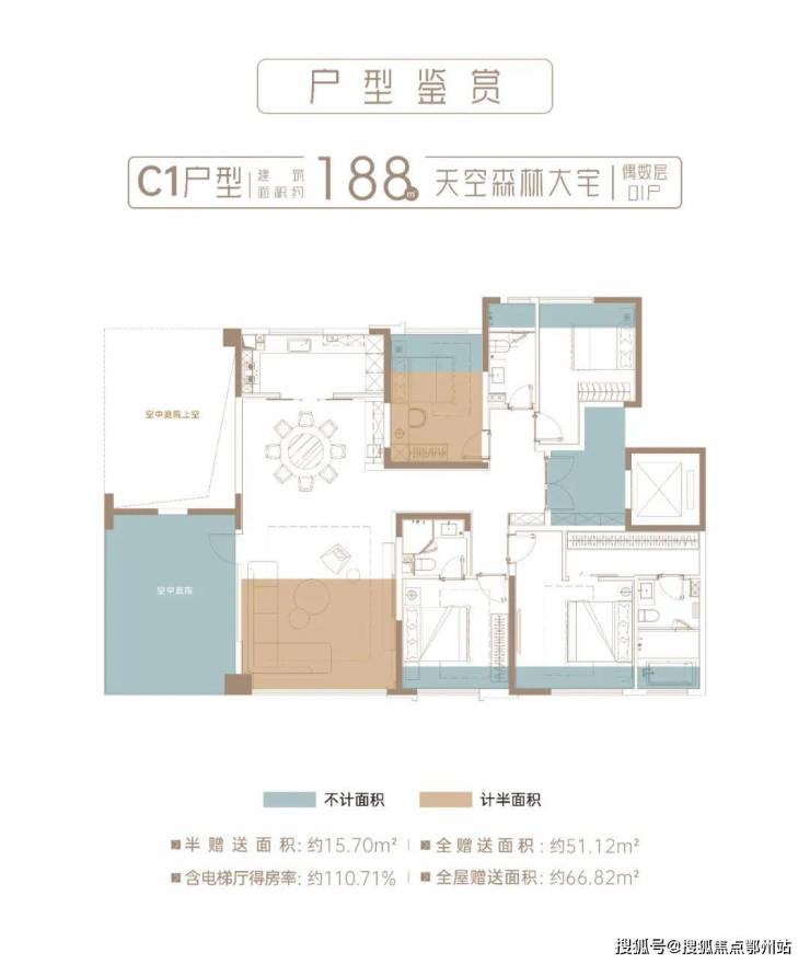目前热卖的 188㎡户型, 得房率高达约110%, 名副其实的“负公摊”!