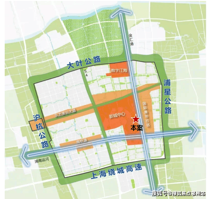 田字绿廊: S4高速公路、东方美谷大道与新城四至围合而成