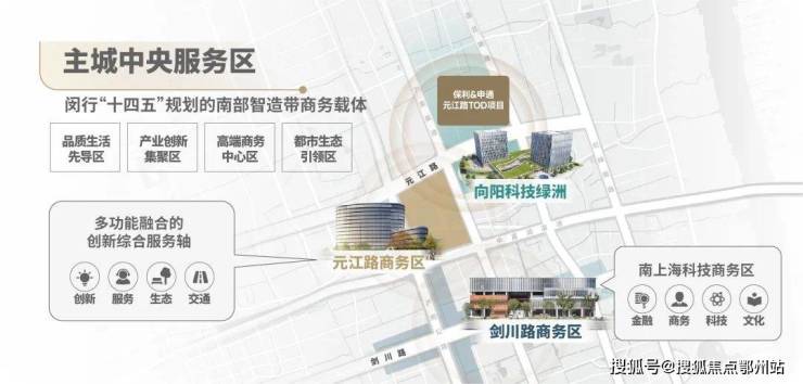 闵行主城南部单元作为上海南部科创中心核心区,与虹桥同频共振,形成南北联动发展格局,成为上海版图中心 “金钥匙”。