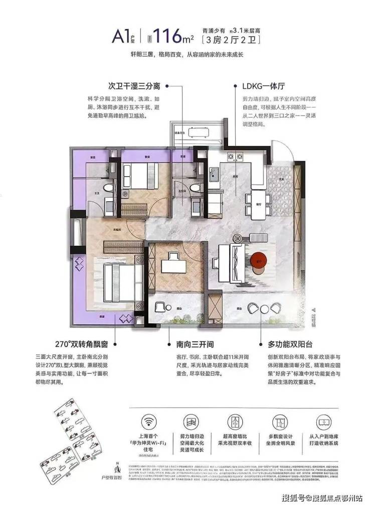 · 超级地段: 项目一边是 西岑华为科创中心 ,汇聚长三角一体化发展的时代浪潮,一边是 虹桥商务区 ,代表大虹桥建设的蓬勃生机,万亿数字产业集群在这条科创产业带上交融汇聚