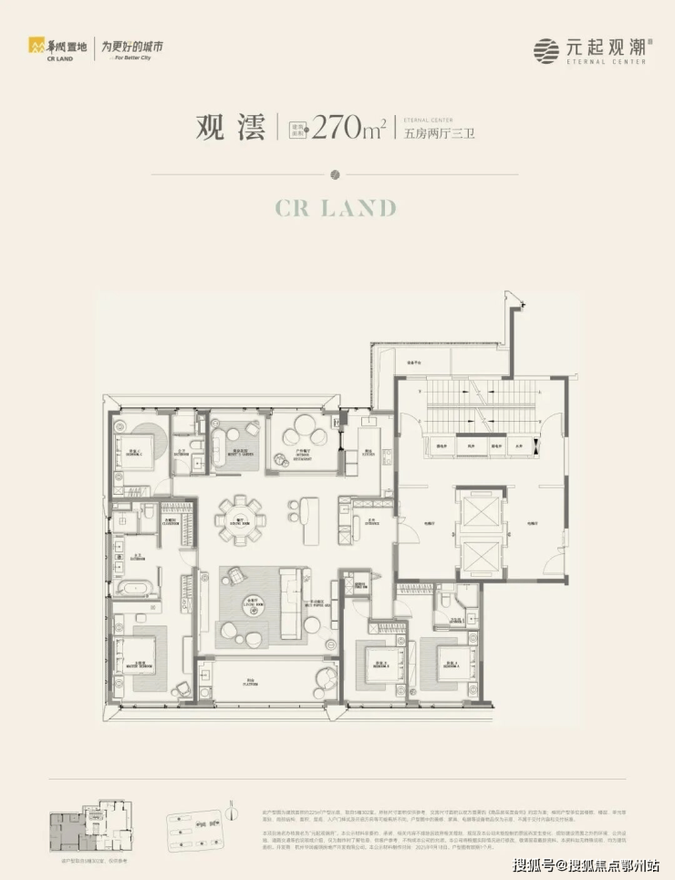 建面约270方五房两厅三卫: