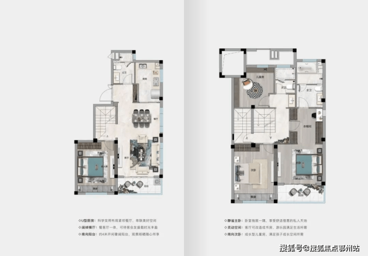 一楼套房可以留给长辈,二楼双套房,就留给大人和小孩,两代人不同的生活作息,互不相扰。