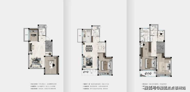 在尺度感上,项目为 三开间朝南的格局,客厅、餐厅和一楼套房一字朝南排开,阔绰敞亮,从室内推开门,就能直达露台/庭院,与天地亲密接触。