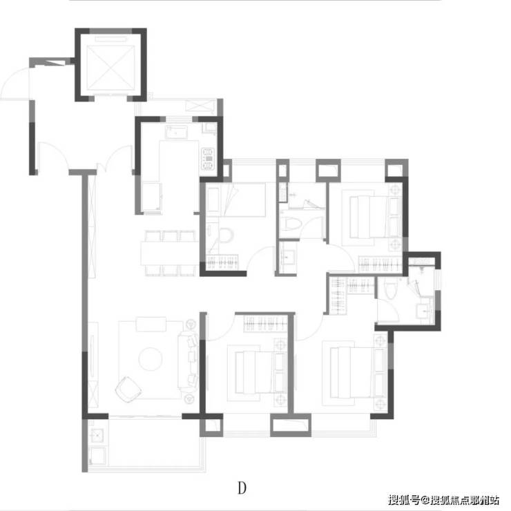 D户型 | 4室2厅2卫 | 建筑面积约122㎡