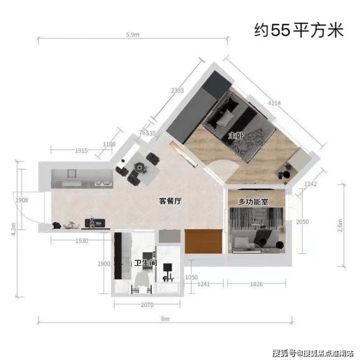 本项目总高21层,层高3米, 总价约180-295万,目前在售户型有36㎡、55㎡、59㎡,现房装修全配交付,首付需8成左右。