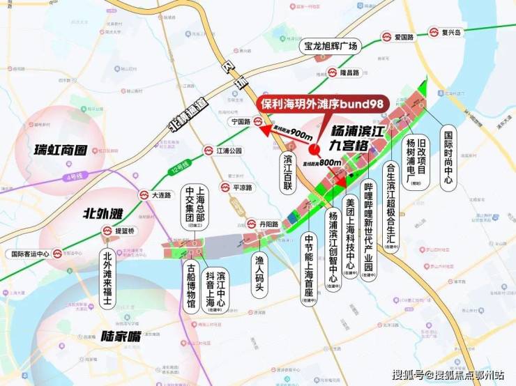 保利海玥外滩序bund98就位于杨浦滨江这个精华九宫格内,不仅纵享九宫格全维顶配资源,南侧约350米就是哔哩哔哩、美团,可谓近水楼台,使其成为区域内极为稀缺的、能够轻松实现从科创大厂步行或骑行归家的全新楼盘,直面科创辐射强大能量。