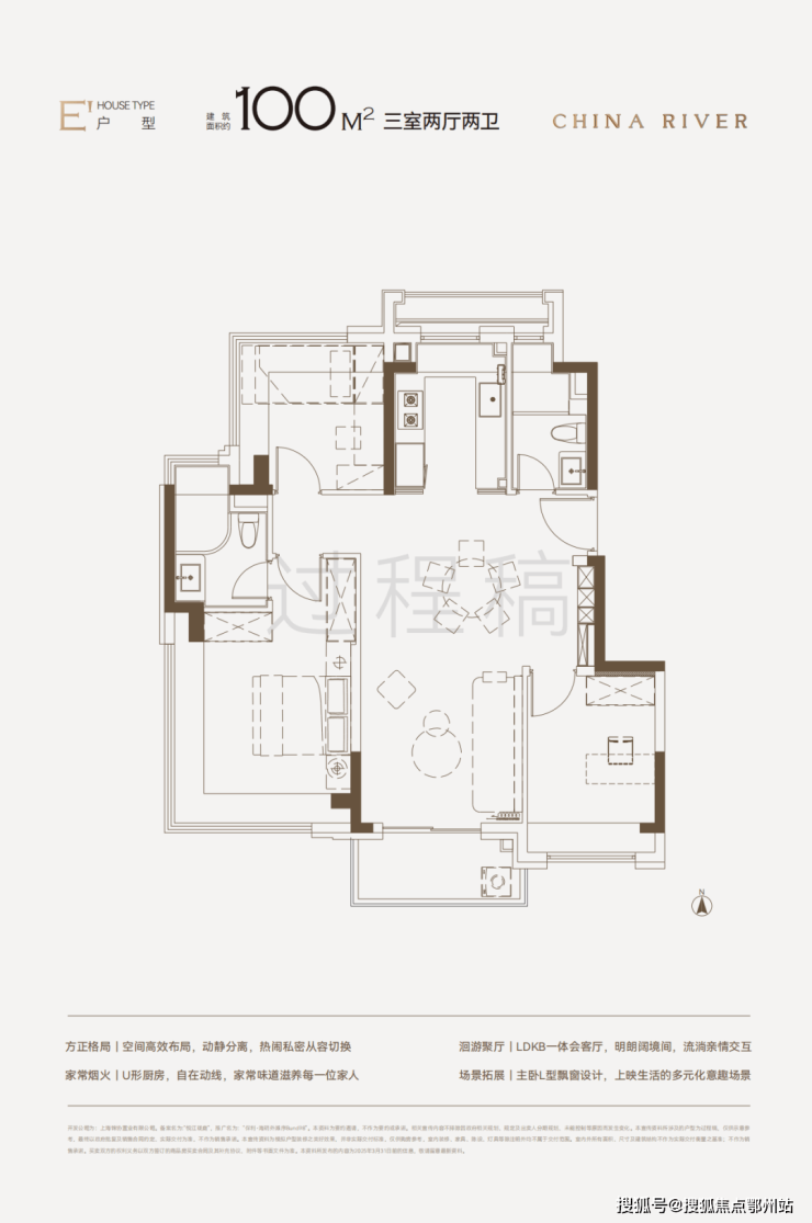 建面约100㎡3房,采用同级罕见四叶草布局 ,三个房间相对独立,互不打扰;南北通透;重要的是几乎无浪费面积,使用率高。