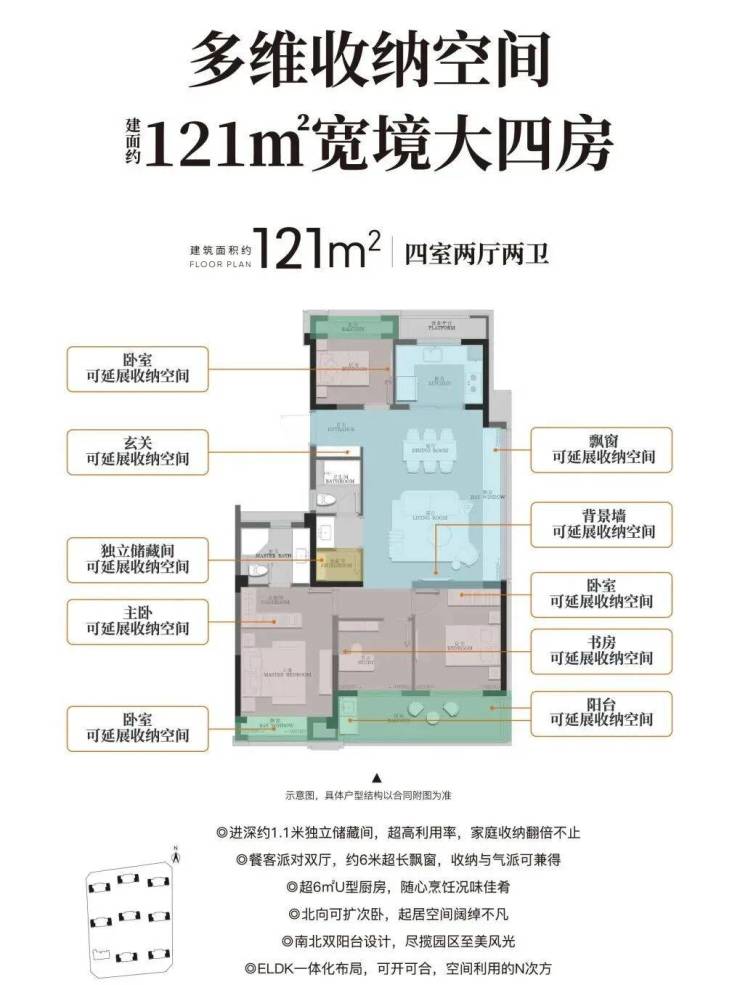 锦上云澜建面约121㎡拥有多功能独立储藏间,其进深达1.1米,可根据需求归置生活闲置用品 ,既可做孩子的乐高玩具王国,又可做女主人的收纳天堂,让生活不再杂乱无章,为爱家节省更多空间。