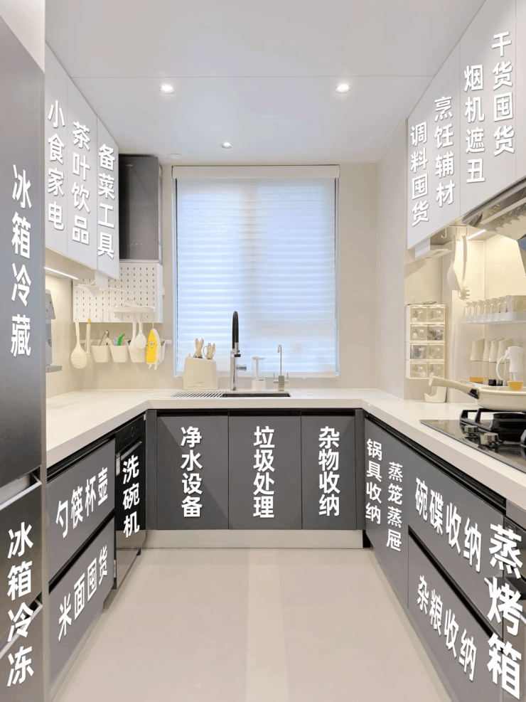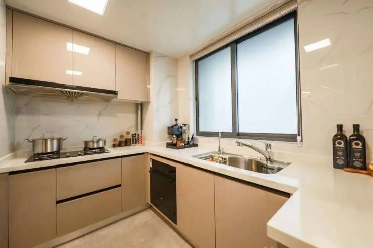 U型厨房设计可容纳多人协同,下厨-洗菜-炒菜一个转身即可完成 ,方便同时进行多样家电厨具操作,家里的一日三餐更高效完成,操作台也有了更多的空间,放上一两盆种植小葱、香草的花盆,享受随用随摘的新鲜口感。