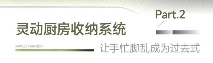 厨房中,大到如早餐机等电器,小至锅碗瓢盆,品种繁多的调味料,是家中收纳更为繁琐的生活空间, 锦上云澜121㎡拥有灵动厨房收纳,轻松开启大展身手的厨艺秀,尽享舌尖上的高阶烟火气。