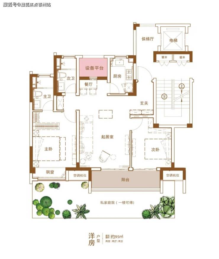 ·一层带有庭院,庭院与横厅等宽,客厅+餐厅达到约7.8米!