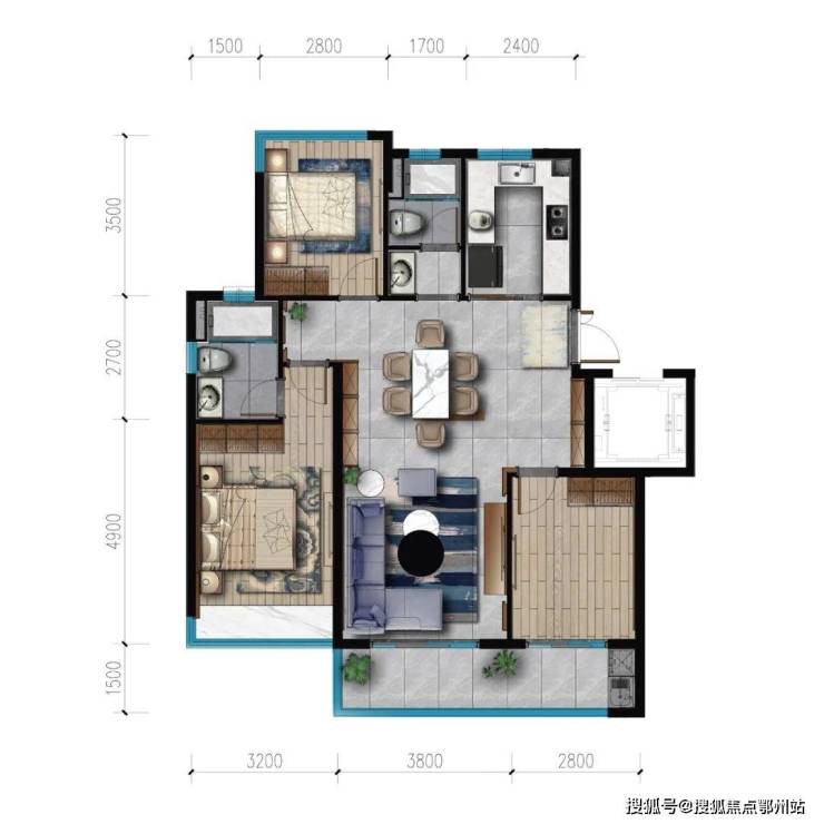 建面约90㎡(两房两厅两卫)