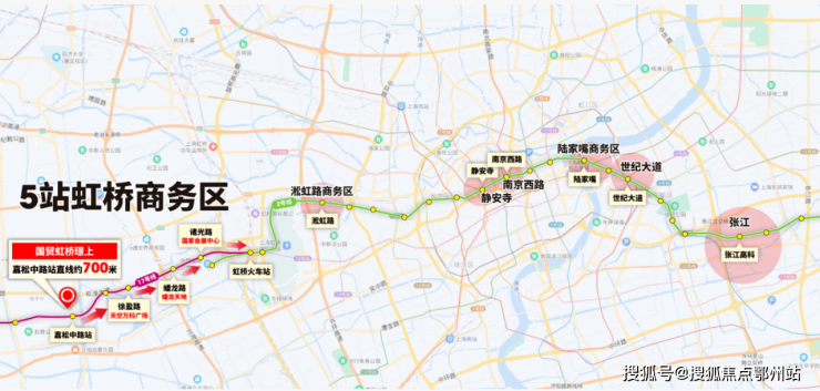 而相比于其它500万级地铁房,项目强在 既连接大虹桥,同时无缝换黄金2号线直接进长宁,一路上皆是高能级商办中心,淞虹路、中山公园、静安寺、南京西路、陆家嘴、张江...一路连缀。