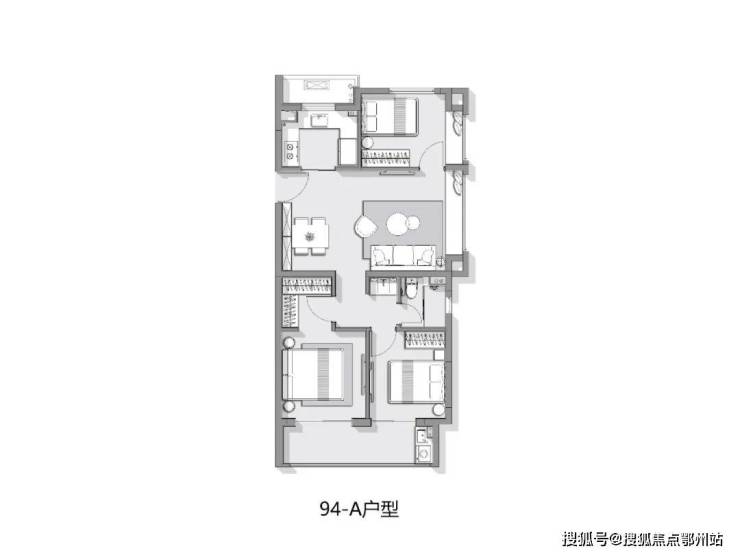 主卧套房设计保证了主人的私密空间。再加上南向三开间,全屋瞰景飘窗的设计,这个户型的尺度感、实用性、采光度等方面的表现都相当出色。
