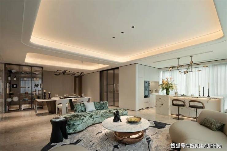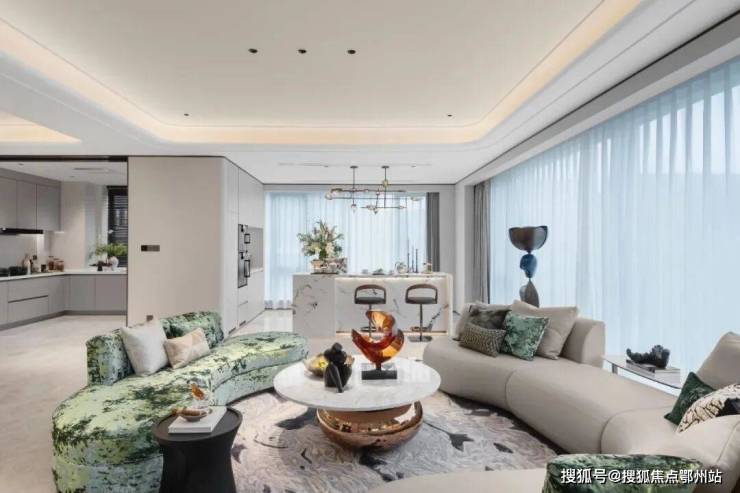 以空间收纳欢悦的时光,为生活赋予艺术的慰藉。约270°环幕社交三联厅,相连开合厅,通过空间的布局和光影的配合,场域与场域的贯通,营造为充满艺趣的社交场景,混合交叉又充满个性,开合之间,私密会客、开放式流,家庭成员的个性需求,都一一得到照顾。