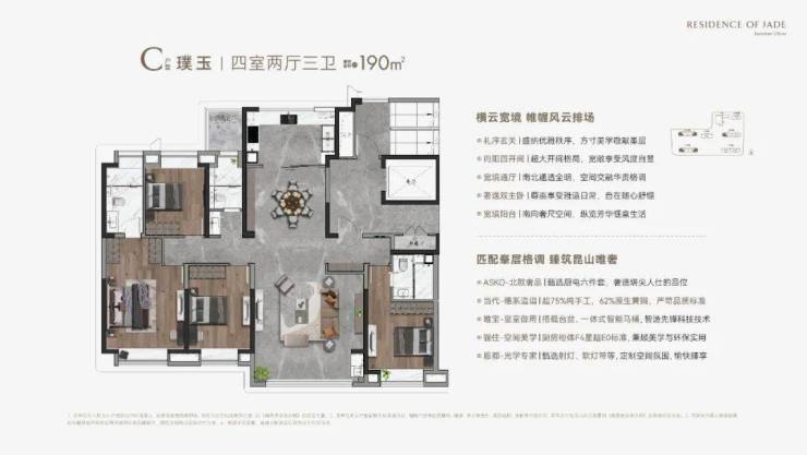 C户型 璞玉丨四室两厅三卫 建筑面积约190m²