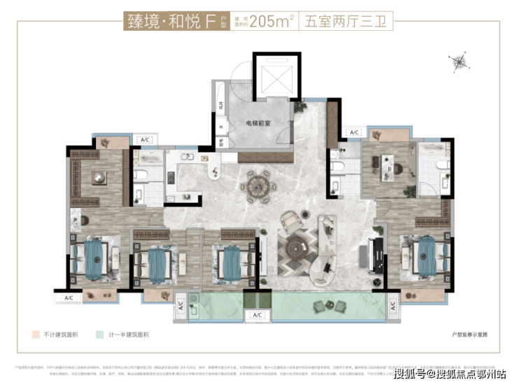 悦达&交投·玖玺台匠心规划了建面约95/110/128/140/205㎡五大户型,满足不同家庭新婚、养老、改善等不同居住需求。 其中,建面约205㎡功能改善型户型堪称“盐城罕有”——南向超20米五开间、约6.7米横厅设计、双套房主卧系统设计,以“空间阔绰感+功能独立性”重新定义品质天花板!