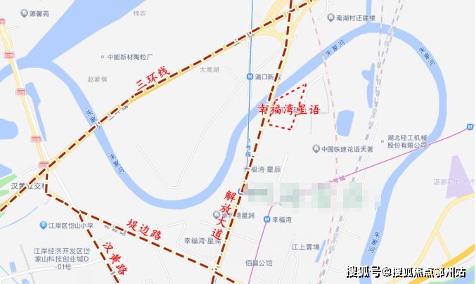 幸福湾星语位于解放大道以东,轻轨1号线藤子岗站以北约600米,楼市划分属于后湖板块,也属于长江新城起步区。行政划分属于江岸区,环线位置在三环以内。