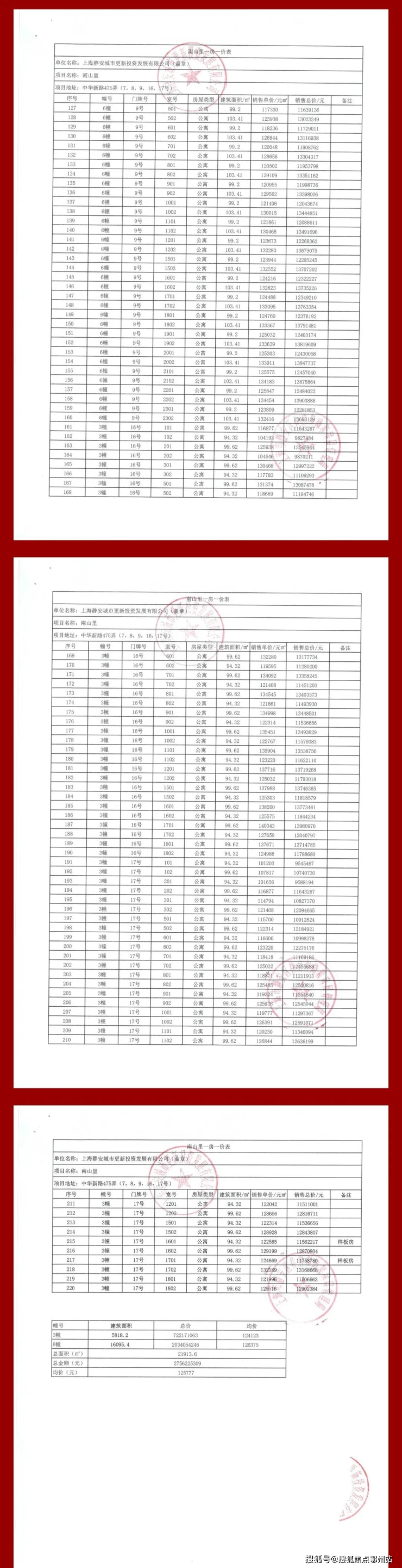 一房一价表