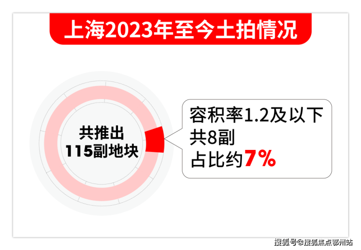据小胖君统计,上海2023年至今,上海土地市场合计推出115副宅地,仅有 8副容积率1.2及以下地块, 占比约7%。