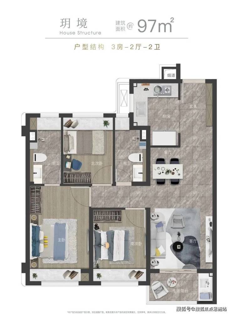 拒绝2+1房型的尴尬与局促,宸光真3房设计,满足功能性需求的同时,追求居住的舒适度,尤其是对于成长型家庭来说,约97平户型兼具总价适中和生活品质,非常难得!