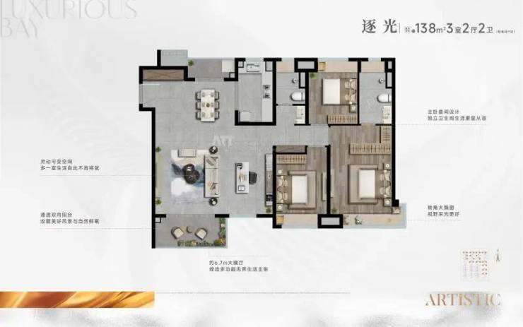 建面约99-139㎡ 精装高层,尽享奢阔面积和超高得房率,匠心研磨动线流畅的厨房、主卧套间、全屋收纳系统等一系列精质细节,主卧套间设计尽显从容优雅, 阔绰尺度灵活空间,满足家庭全周期成长。