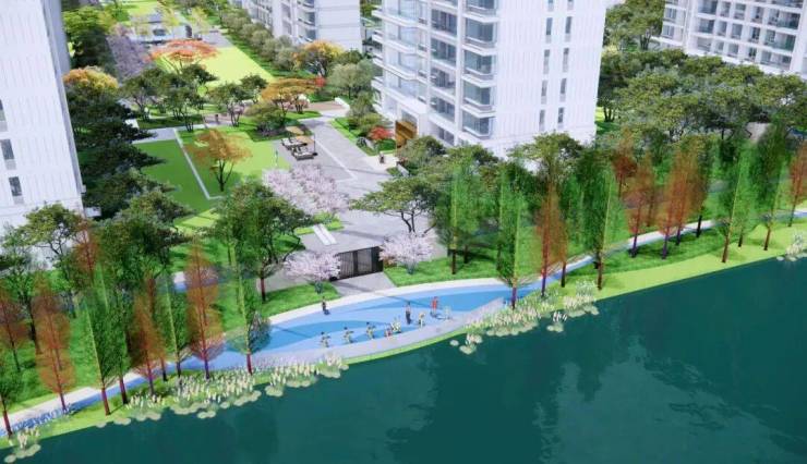 【复地·星愉湾】倚靠旧港河而建,为了能够让更多的业主饱览优美的河景,特别将高层区域沿河而立,以便拥享内外双重景观。