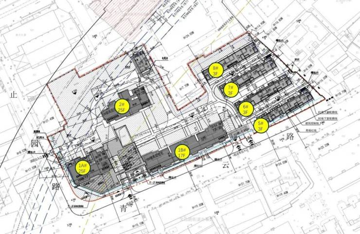 西侧为17-25层高层住宅,东侧为4栋3层联排。