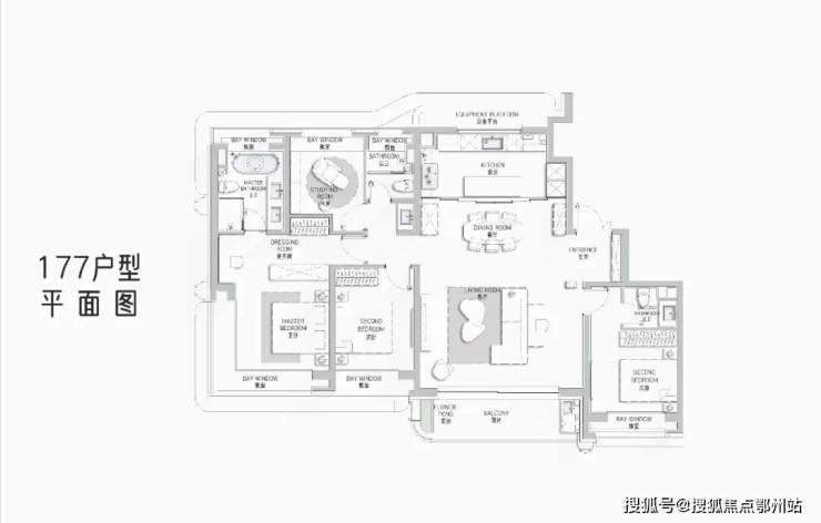 - **户型设计**:主力户型为建面约112-177㎡的3-4房,全系采用“动静分离+双套房”设计,最小面积112㎡亦为舒适三房,主卧标配270°飘窗或阳台,部分户型赠送迷你花园。