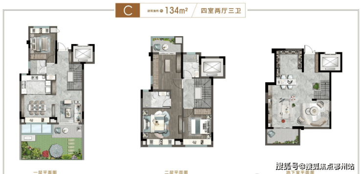 项目有118㎡、134㎡下叠和105㎡、123㎡上叠四种真叠墅产品,营造大空间,赋予生活“N+1”种可能,做到真正的有天有地有花园。