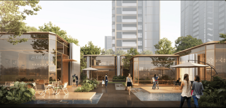 在商业方面, 丰翔路TOD中环置地中心, 已经确定引入华润【万象汇】商业, 华润置地邀请了打造前滩太古里的5+Design作为设计师,打造这座与众不同的北上海商业封面。设计师利用中环置地中心独特的城市环境,从自然水系密布的走马塘绿地公园开始,将商业街区、购物中心、地标办公、轨交站点与自然公园融合。