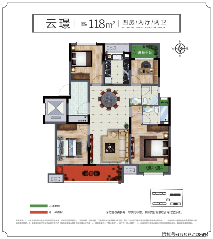 118㎡ 四房两厅两卫(80套)