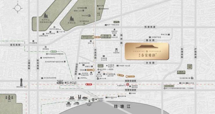 轨道交通:直线距离约800米地铁9号线翁梅站,5站钱二(红普南路),对接钱江新城、杭州东站、客运中心的快速互联。快速路网:东湖快速路连留石、秋石、钱塘、空港等高架互通主城。