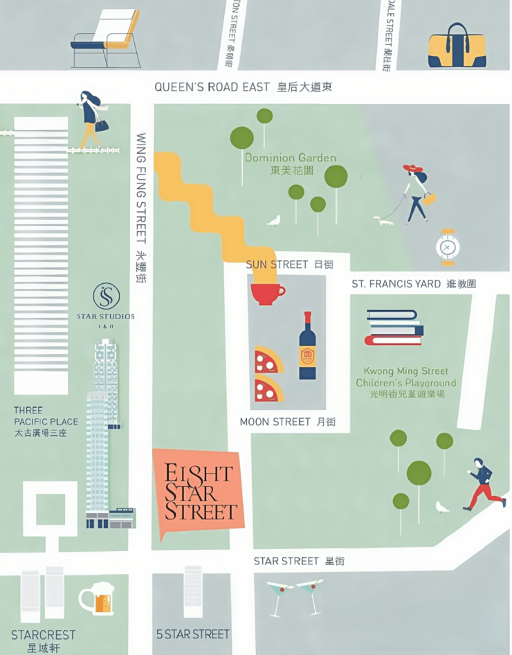 商业便利:紧邻太古广场,汇聚高端品牌与餐饮。周边星街小区潮流小店、艺术画廊及特色食肆林立,月街、日街文艺氛围浓厚。步行可达湾仔、中环商圈,从日常消费到高端购物需求,均能便捷满足。