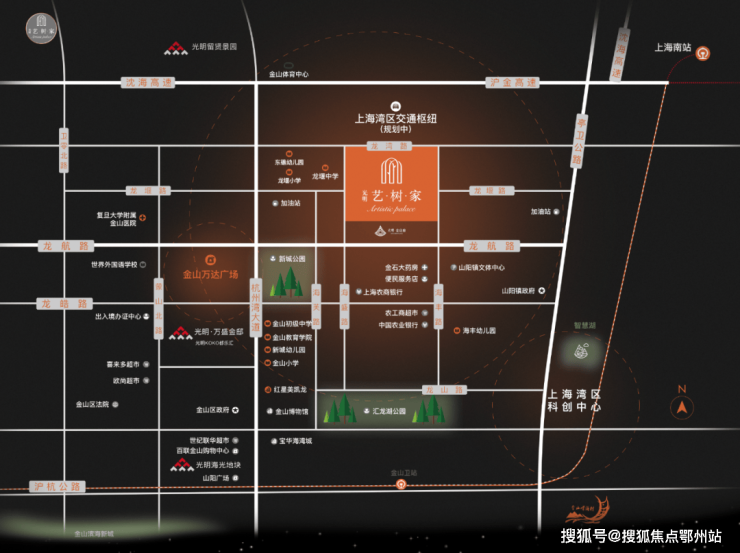 交通配套:金山铁路,六站直达上海南站、G15沈海高速/G60沪昆高速/虹桥枢纽7路可直达虹桥