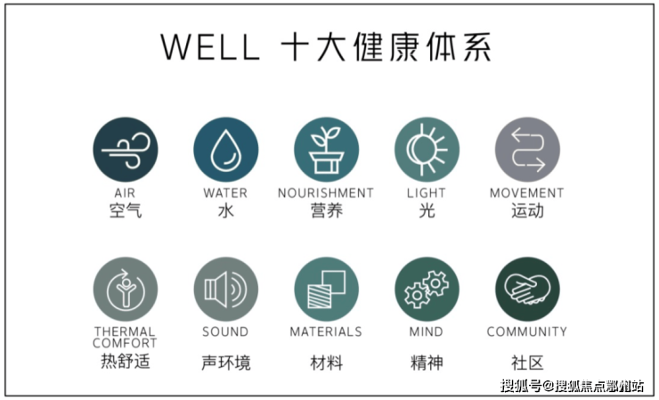 通过WELL10大数据化测量、认证和监测空气、水、营养、光、健身、舒适和精神等建筑环境特征,将健康无缝嵌入到住区中,润物细无声,可持续的提升居者健康和幸福。