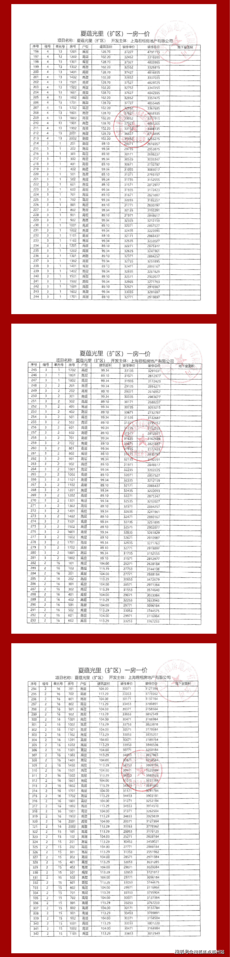 项目一房一价表