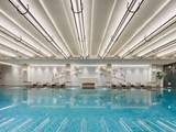 大尺度落地窗,与下沉庭院无缝连接,将窗外的山石、松影与飞瀑引入室内。每一次畅游,仿佛流动于山水长卷之中。整个泳池空间全部采用“香槟金”马赛克铺装,加上度假风情的休憩区,以及疗愈按摩系统,酒店式尊崇的舒适感扑面而来。
