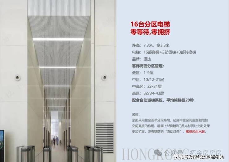 电梯配置:16部客梯+3部摆渡梯+2部货梯