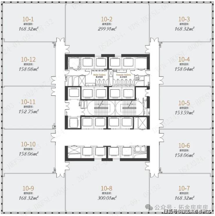 精装交付,每层7-12户划分,面积约150-2400㎡灵动组合