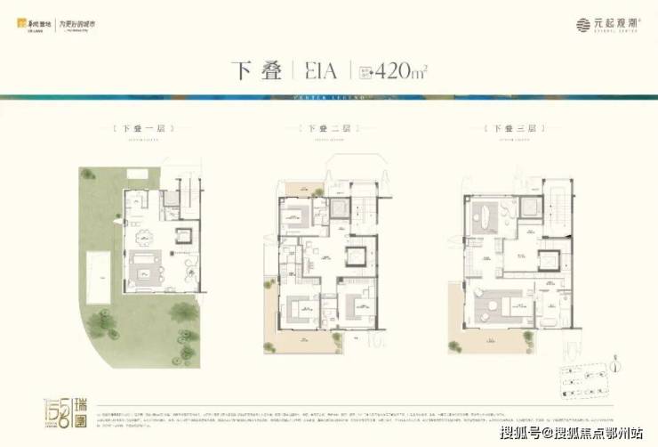 3、建面约420㎡上叠、下叠:客厅层层高约3.9米(目前全杭州最高,一般叠墅客厅层高只有3.3-3.5米),卧室层层高约3.6米(目前全杭州最高,一般叠墅卧室层高只有3.1-3.3米),下叠地下室层高6.5-7.1米(目前全杭州最高,一般叠墅地下室层高只有6米左右),院子最大超300方。