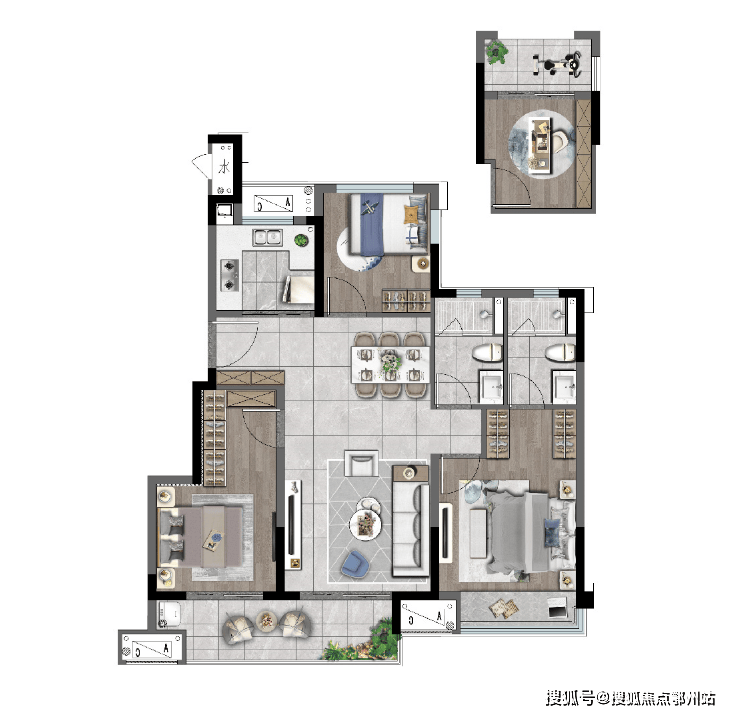 其次,该户型还做到了 真正的动静分区 。卧室的私密性完全不受公区影响,将舒适度与空间感拿捏得当。