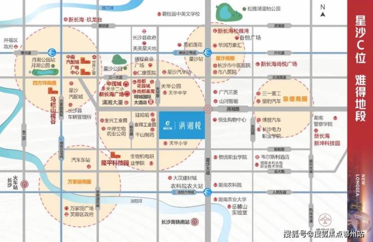 星沙大道,星沙贯穿南北的一条主干道,北接松雅湖,南下高铁南站,串联了星沙政治、经济、文化、教育、产业等多产业。而漓湘路也是一条重要的东西主轴,西起于三一大道,在三一大道东段变身长浏高速之后,稍微偏南的漓湘路就接上东拓重任。两条主干道交汇, 犹如五一大道与芙蓉路的黄金十字交汇,占位城市优势资源。