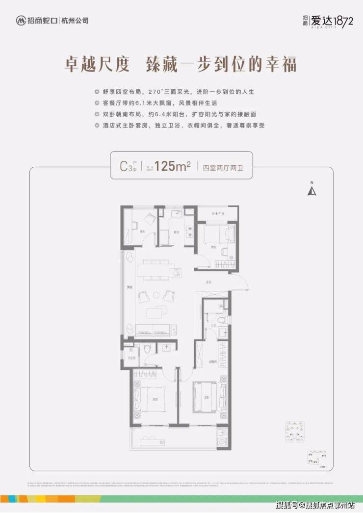 杭州招商爱达1872售楼处电话:400-112-0302【售楼中心】约270°采光面、双卧朝南动静分离、二分离式公卫、主卧豪华套房,总价200万级,享受全杭顶配生活,一个月社保就可以买的招商蛇口·爱达1872。