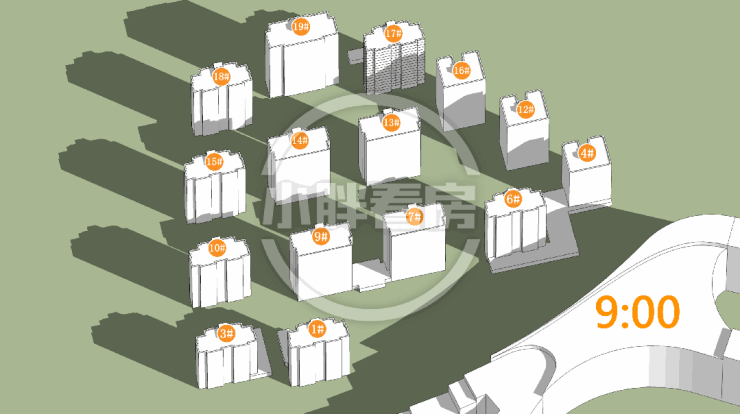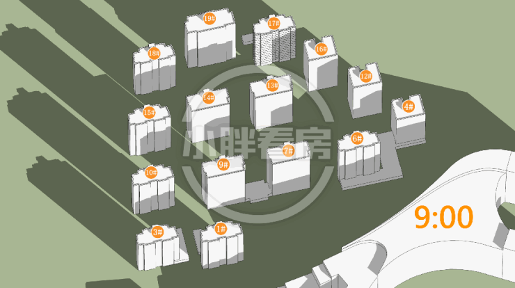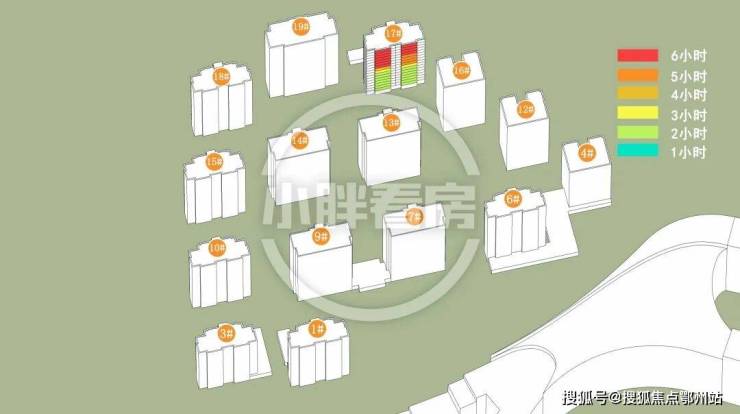17#中低层受遮挡。就具体遮挡时间而言,17#全天不同时段均会受到遮挡。